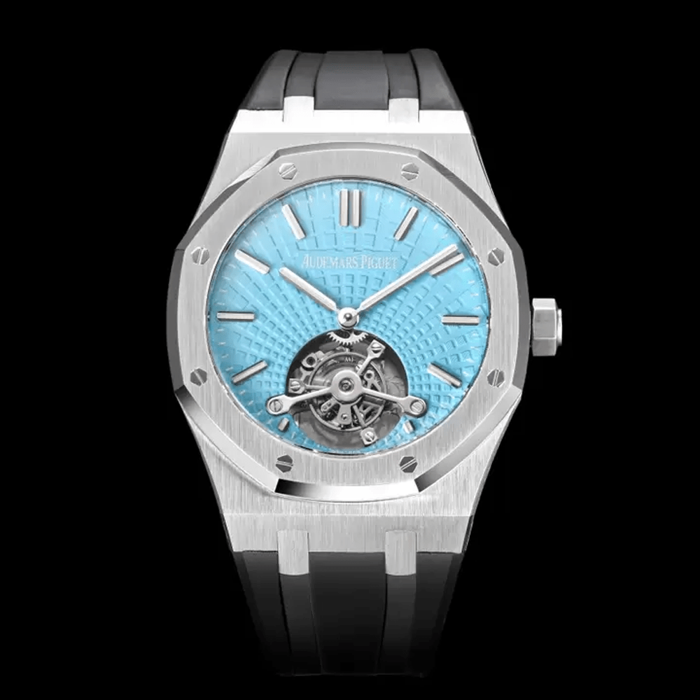 R8 공장 오데마피게 로얄오크 투르비옹 엑스트라씬 티파니 다이얼 블랙 러버 스트랩 41mm 26530