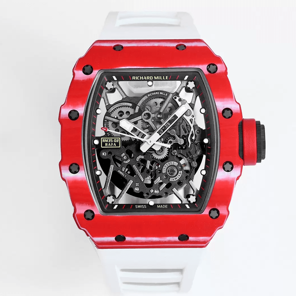 리차드밀 라파엘 나달 레드 카본 스켈레톤 다이얼 화이트 러버 스트랩 RM35-02