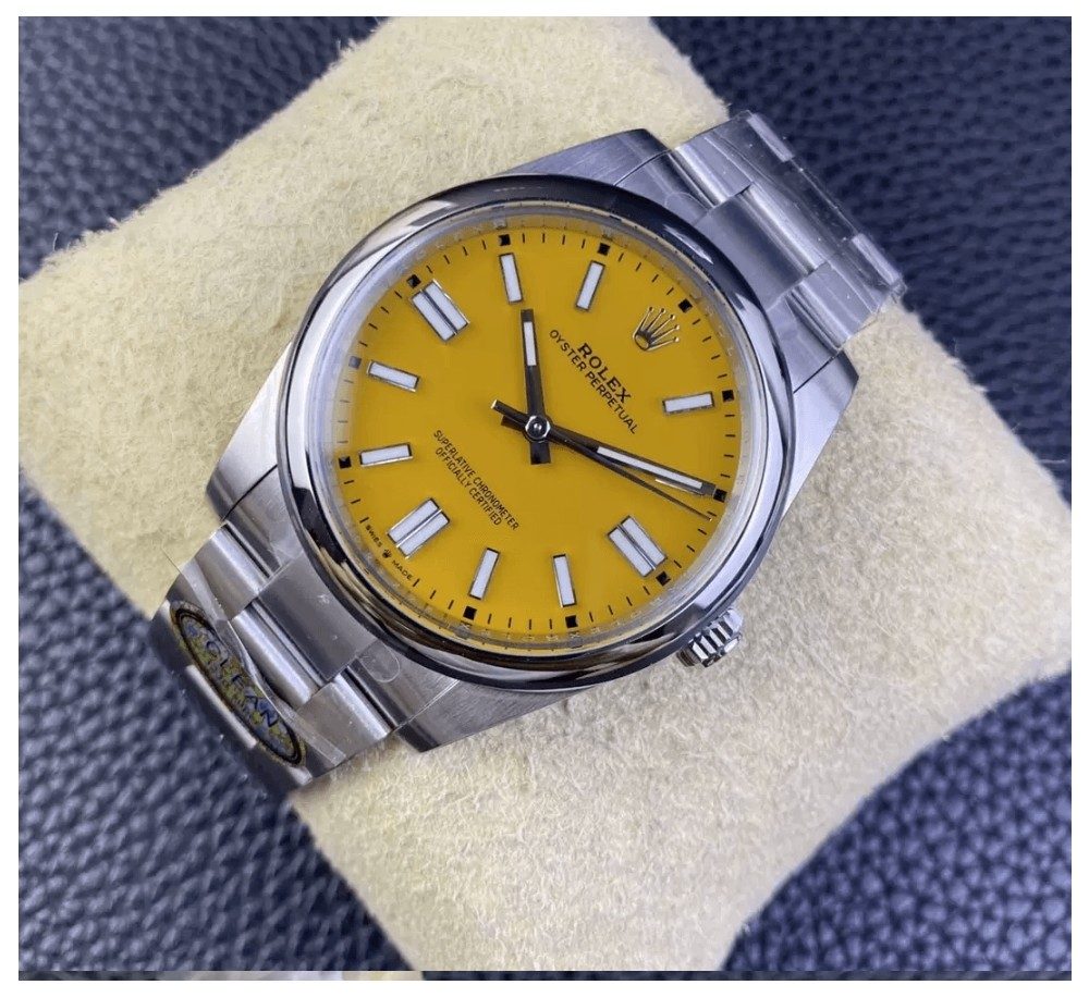 롤렉스 오이스터 퍼페츄얼 옐로우 다이얼 바인덱스 SS 브레이슬릿 41mm 124300