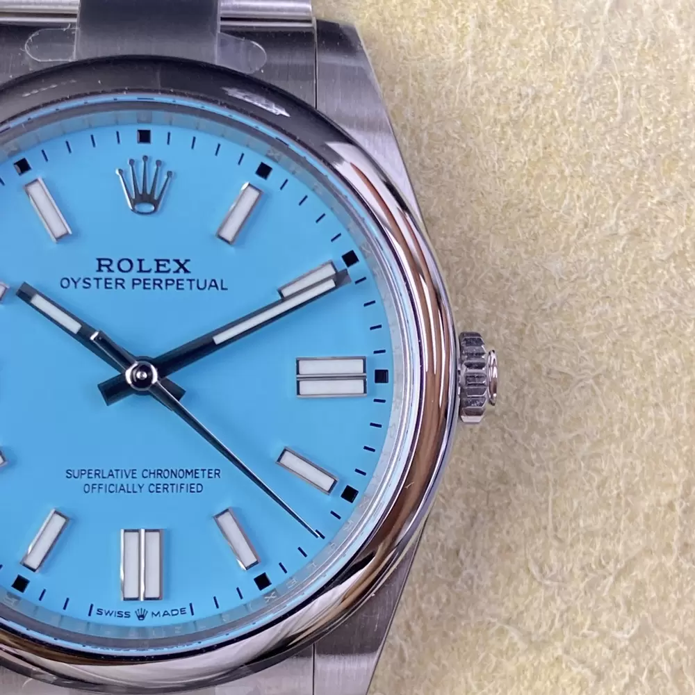 롤렉스 오이스터 퍼페츄얼 터콰이즈 블루다이얼 바인덱스 SS 브레이슬릿 41mm 124300