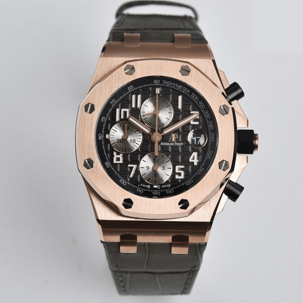 오데마피게 로얄오크 오프쇼어 다이버 크로노그래프 블렉 다이얼 RG 블랙 가죽 스트랩 42mm 26470OR
