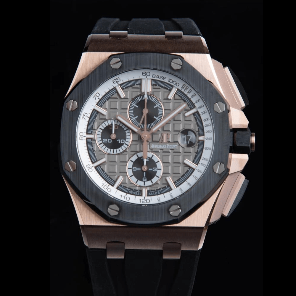 오데마피게 로얄오크 오프쇼어 크로노그래프 그레이 다이얼 블랙세라믹 RG 블랙 러버스트랩 44mm 26416RO