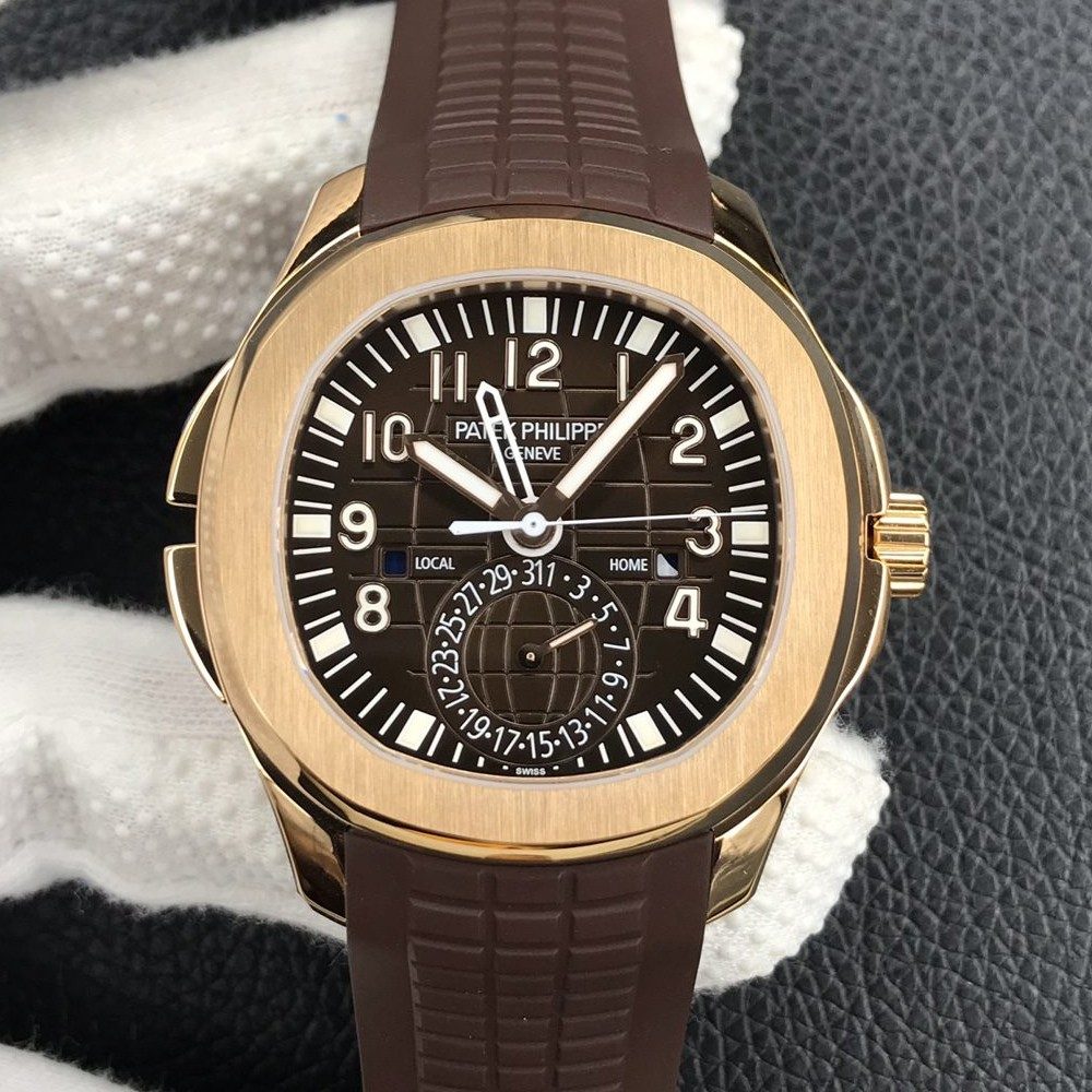 파텍필립 아쿠아넛 트래블타임 브라운 다이얼 로즈골드 41mm 5164