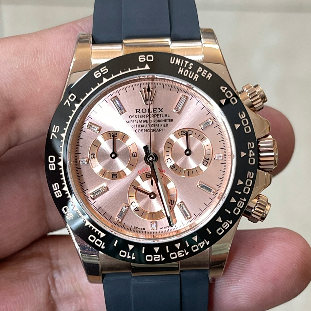 롤렉스 데이토나 크로노그래프 로즈골드 다이얼 바게트다이아 러버밴드 40mm 116515