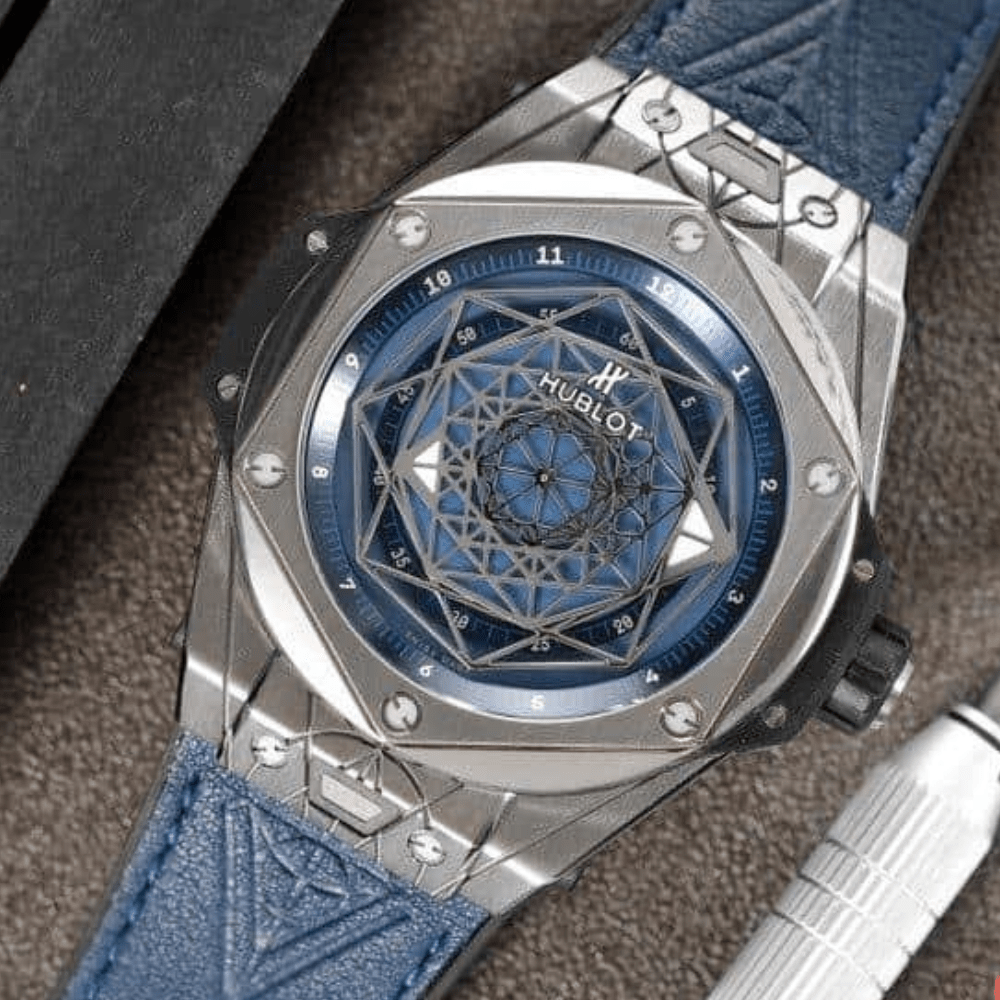 WWF 의 새해 첫 쇼: 위블로 빅뱅 시리즈 - 타투 워치! 오리지널 1:1 몰드, 제작에 2년 걸렸습니다! 케이스: 45mm, 기술 혁신의 결정체, 업계 유일의 티타늄 케이스, 시중에 유통되는 대부분의 버전은 스틸 케이스이며, 케이스 몰드는 무려 12개나 됩니다. 퀵 릴리스 버튼은 오리지널과 동일한 누름감, 정밀함, 부드러움을 구현하기 위해 수없이 많은 보정을 거쳤습니다!