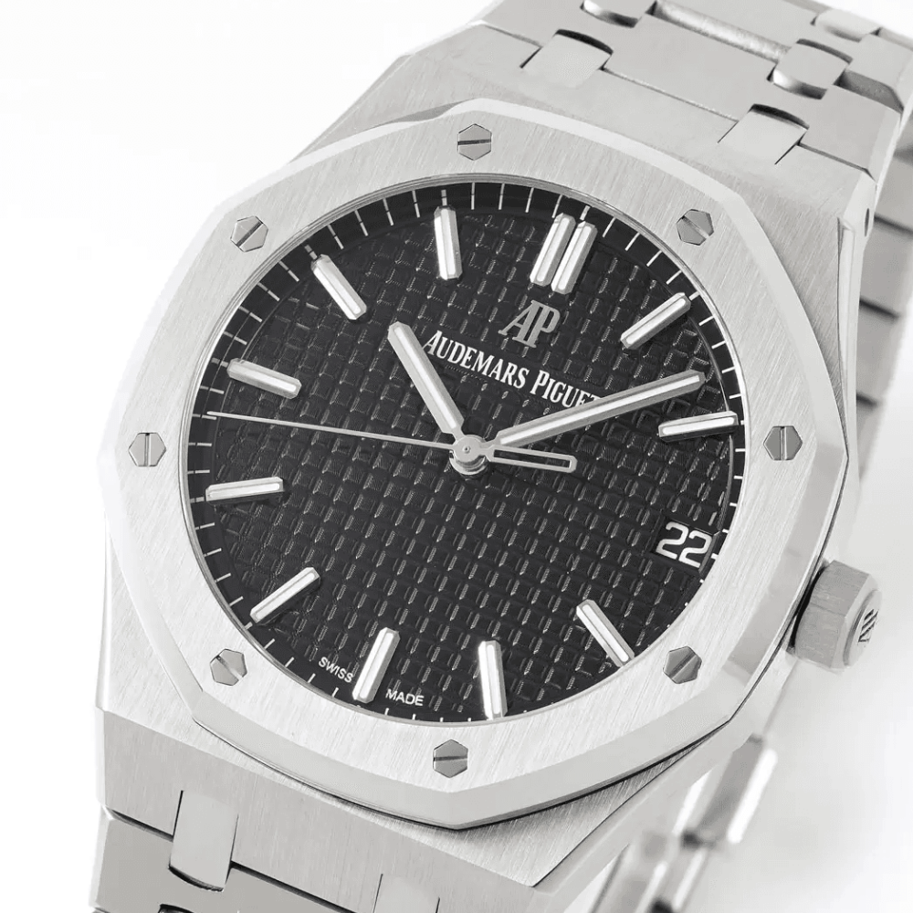오데마피게 로얄오크 블랙 텍스처 다이얼 SS 브레이슬릿 V3 41mm 15500