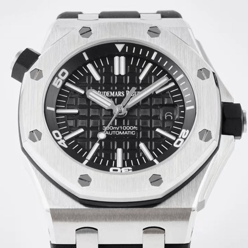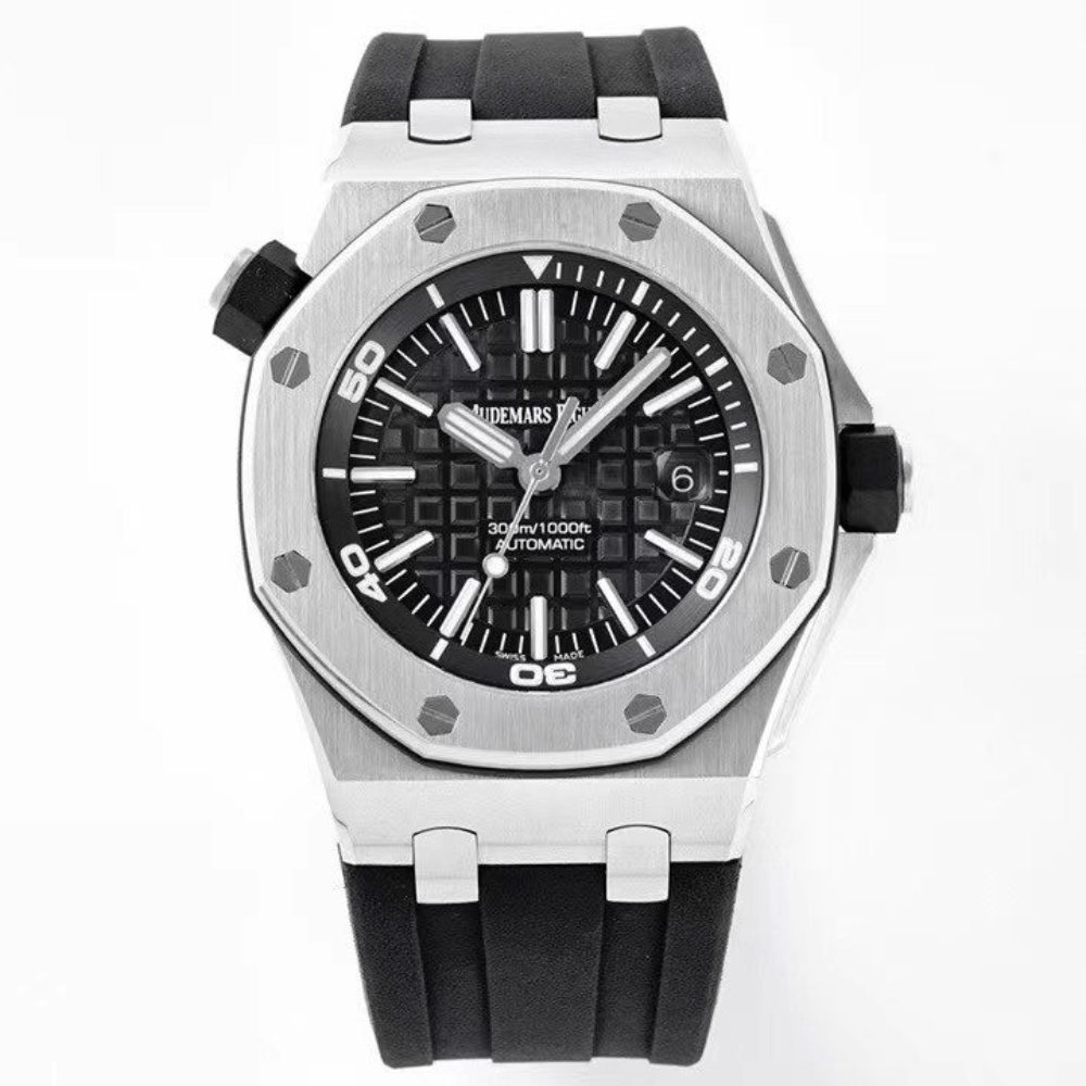 오데마피게 로얄오크 오프쇼어 블랙 텍스처 다이얼 스틸 블랙 러버 스트랩 42mm 15703ST