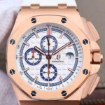 오데마피게 로얄오크 오프쇼어 화이트 다이얼 로즈골드 화이트 러버 스트랩 44mm 26408OR