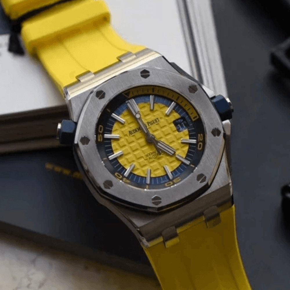 오데마피게 로얄오크 오프쇼어 다이버 옐로우 다이얼 러버 스트랩 42mm 15710ST