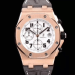 오데마피게 로얄오크 오프쇼어 화이트 다이얼 로즈골드 가죽 스트랩 42mm 26170ST