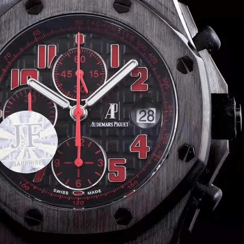 오데마피게 로얄오크 오프쇼어 블랙/레드 다이얼 라스베가스 한정판 가죽 스트랩 42mm 26170ST