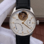 IWC 포르투기저 투르비옹 스틸 화이트/로즈골드 다이얼 레더 스트랩 44.2mm IW504401