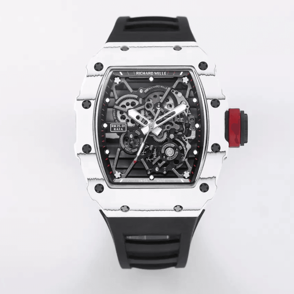 리차드밀 라파엘 나달 화이트 카본 스켈레톤 다이얼 블랙 러버 스트랩 RM35-01