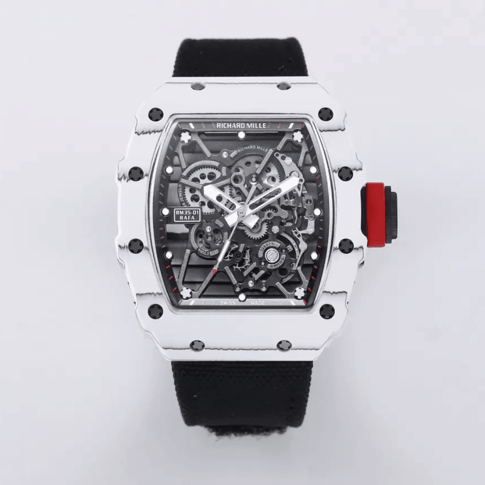 리차드밀 라파엘 나달 화이트 카본 스켈레톤 다이얼 블랙 우븐 스트랩 RM35-01