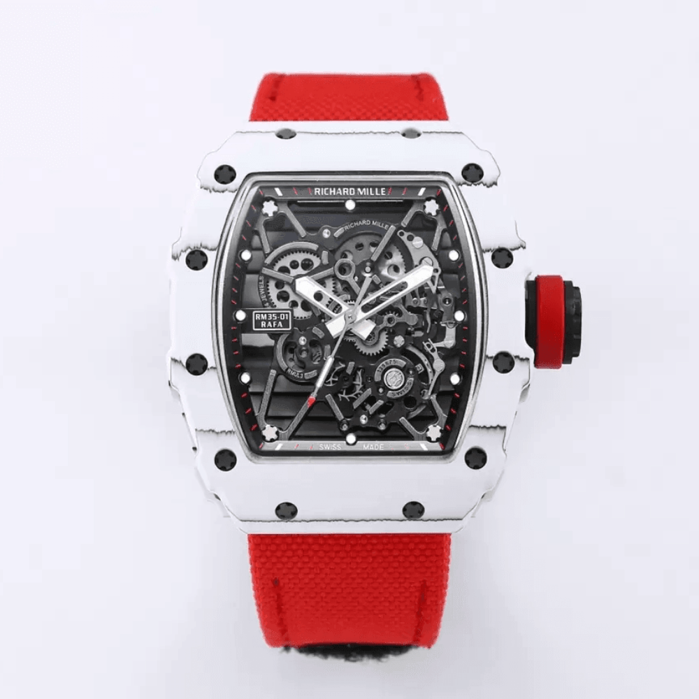 리차드밀 라파엘 나달 화이트 카본 스켈레톤 다이얼 레드 우븐 스트랩 RM35-01