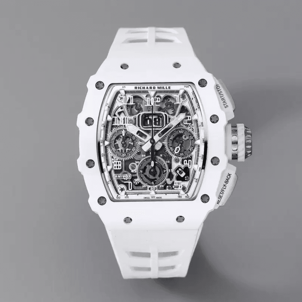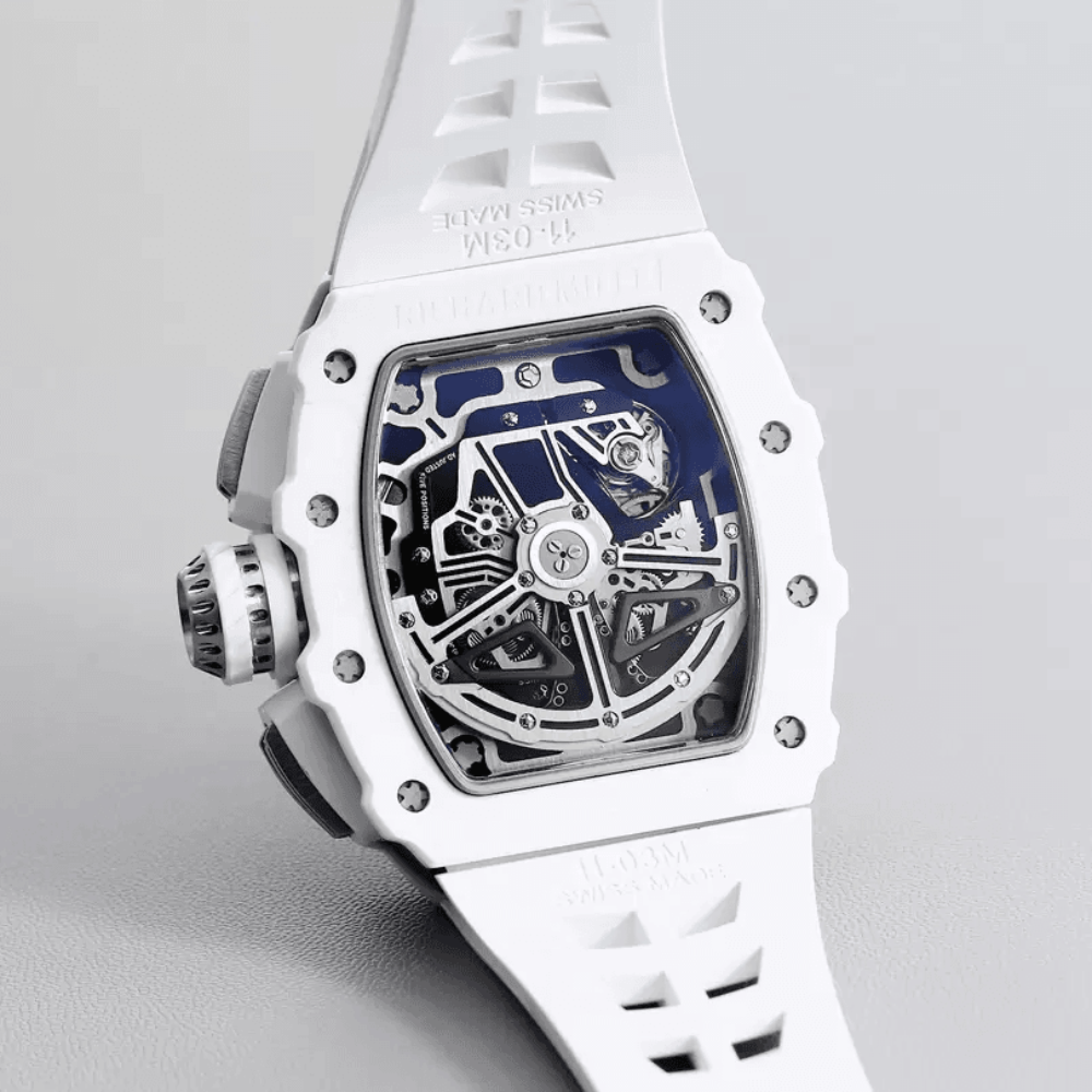 리차드밀 화이트 세라믹 스켈레톤 다이얼 화이트 러버 스트랩 v5 RM11-03
