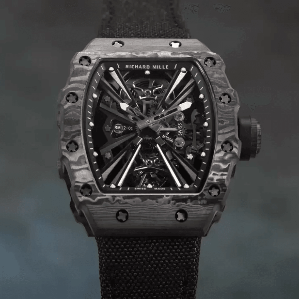 리차드밀 투르비옹 블랙 카본 블랙 우븐 스트랩 RM12-01