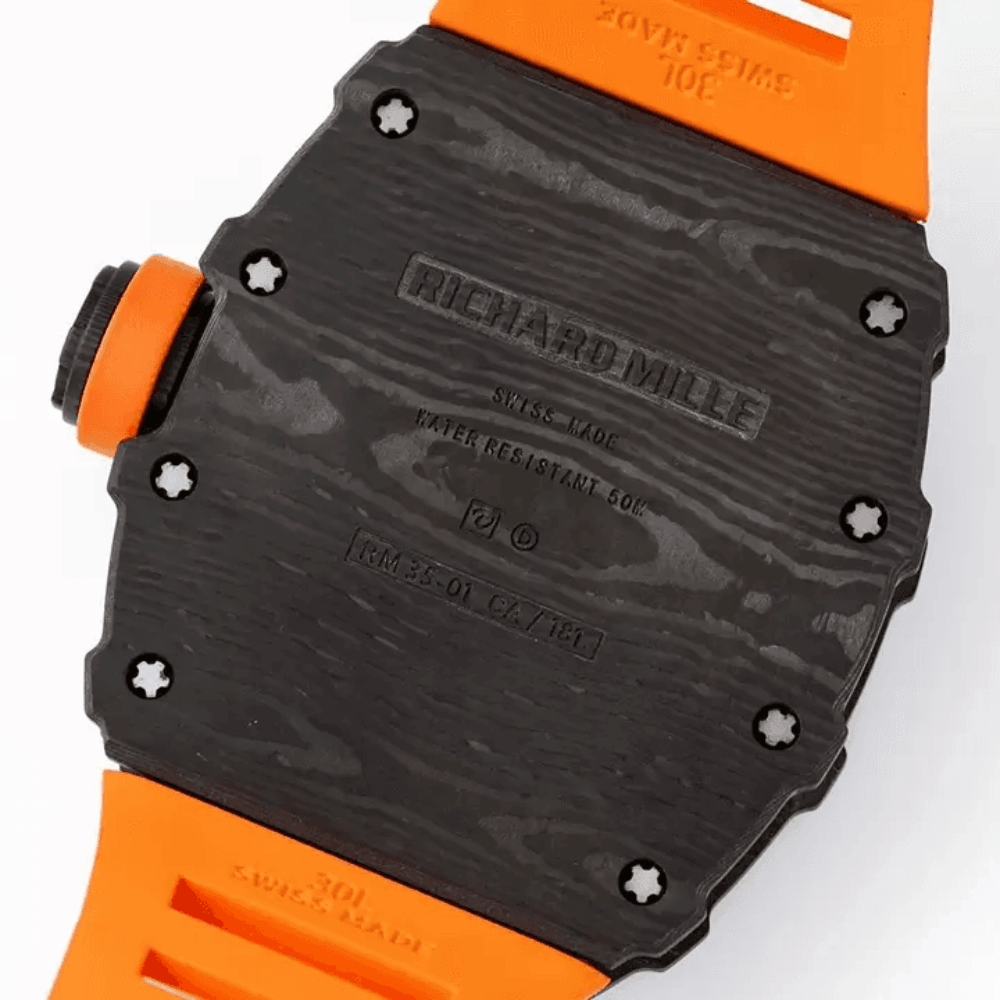리차드밀 블랙 카본 스켈레톤 다이얼 오렌지 러버 스트랩 RM35-01
