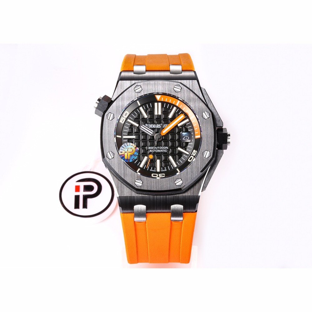 오데마피게 로얄오크 오프쇼어 다이버 블랙 다이얼 세라믹 오렌지 러버 스트랩 42mm 15707CE