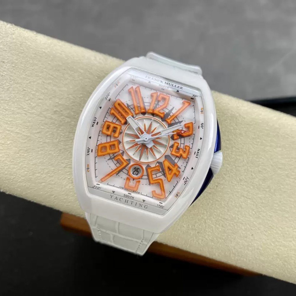 프랭크 뮬러 뱅가드 화이트 세라믹 오렌지 포인트 다이얼 한정판 45mm V45