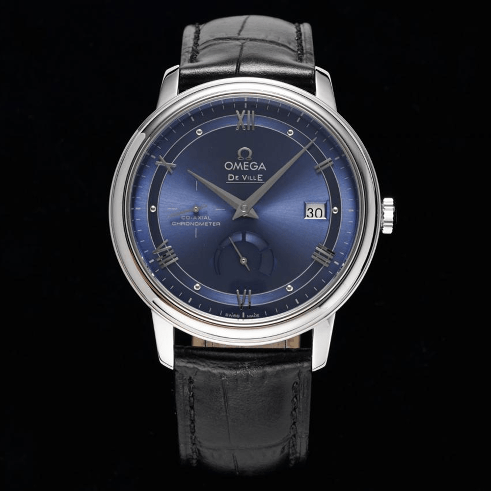 오메가 드빌 네이비 다이얼 드레스 워치 가죽 스트랩 424.13.40.21.03.002