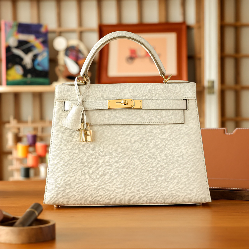 에르메스 올수공 아이보리 셀리에 켈리 25 금장 앱송