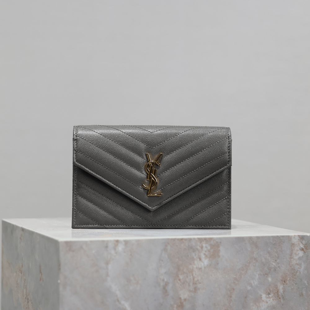 생로랑 여성 마틀라세 모노그램 체인 지갑 그레이 377828