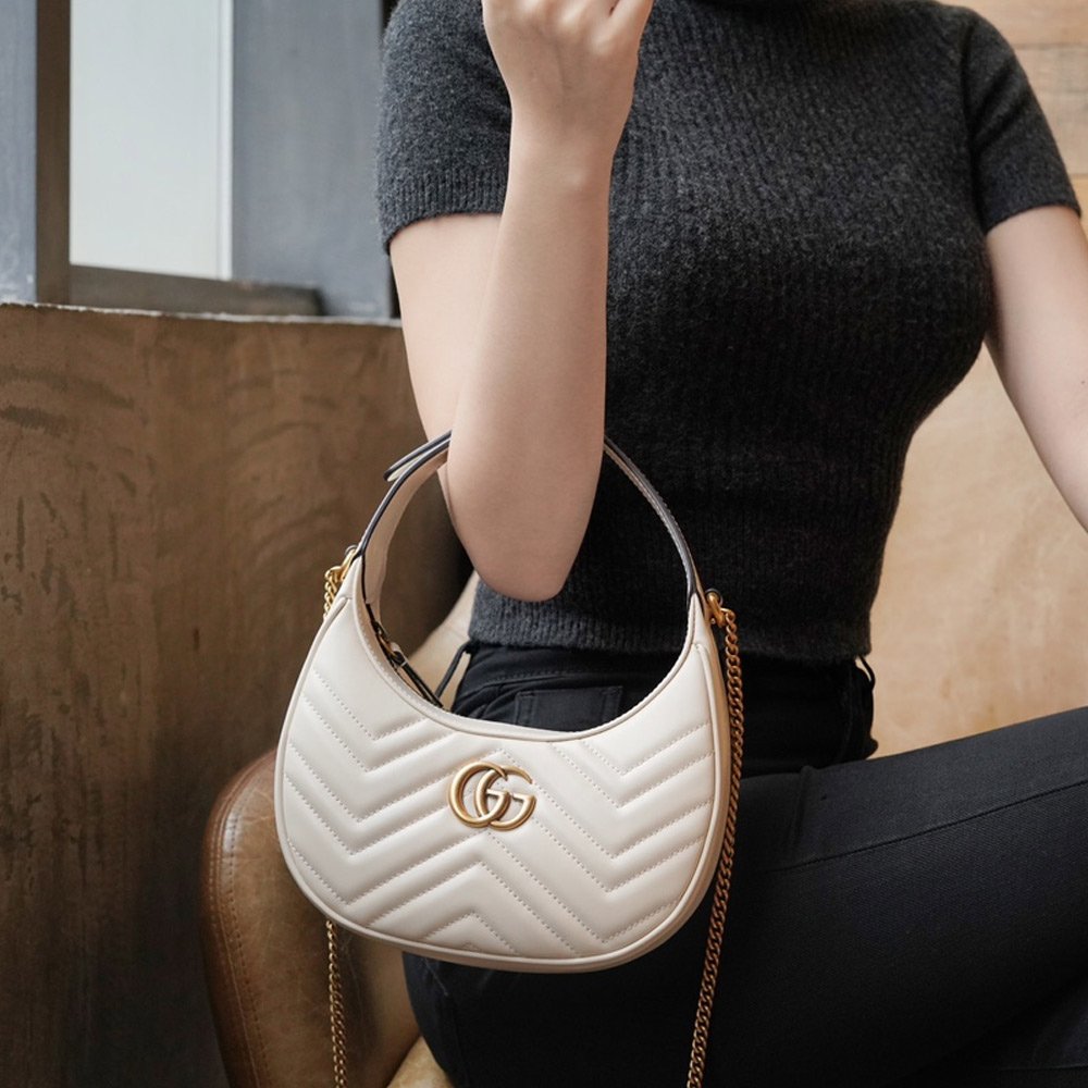 구찌 GG 마몽 레더 하프문 쉐입 미니백 화이트