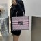 디올 화이트 & 페일 핑크 Miss Dior Allover 자수 북 미듐 토트백