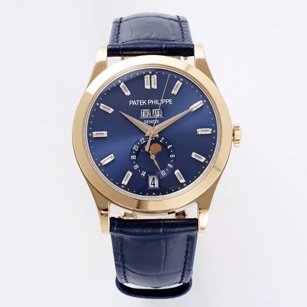 파텍필립 문페이즈 컴플리케이션 애뉴얼 캘린더 청판 다이얼 로즈골드 가죽 스트랩 5396