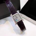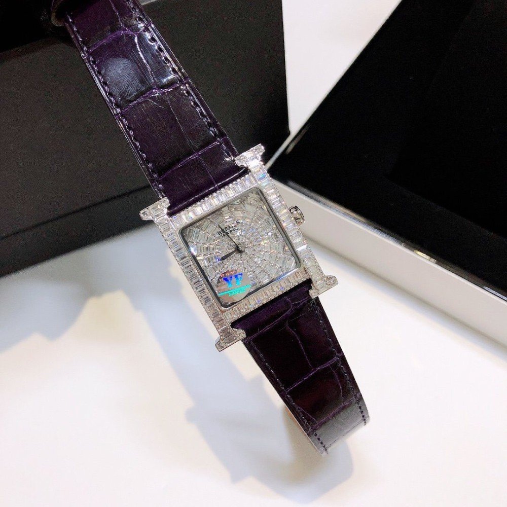 에르메스 H HOUR 시리즈 여성용 벨트시계[풀 다이아몬드] 레더 스트랩 26mm