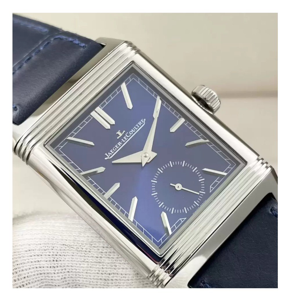 예거 르쿨트르 리베르소 클래식 라지 듀오페이스 스몰 세컨드 블루 다이얼 레더 스트랩 Q3988482