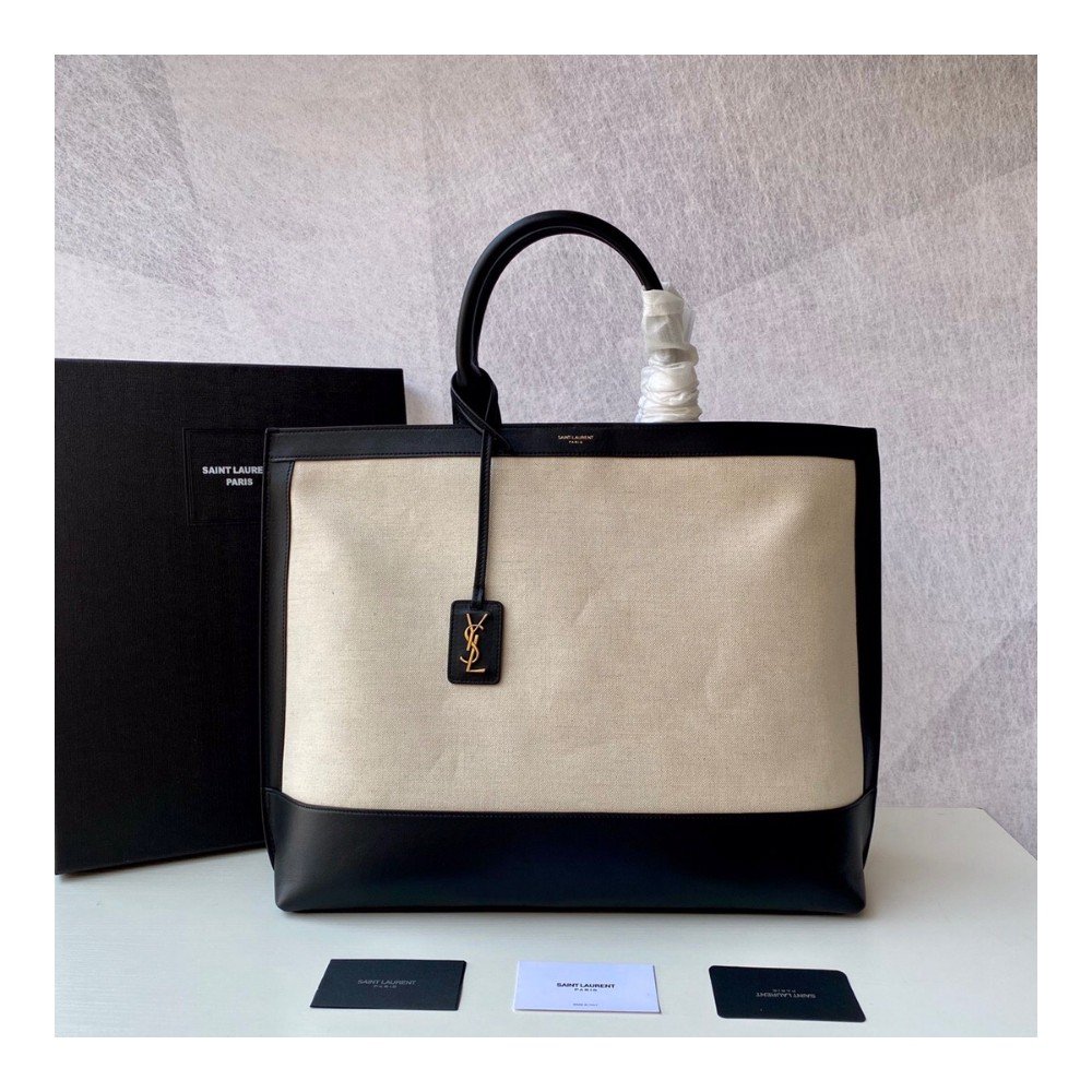 생로랑 카바스 투톤 토트백 블랙&화이트