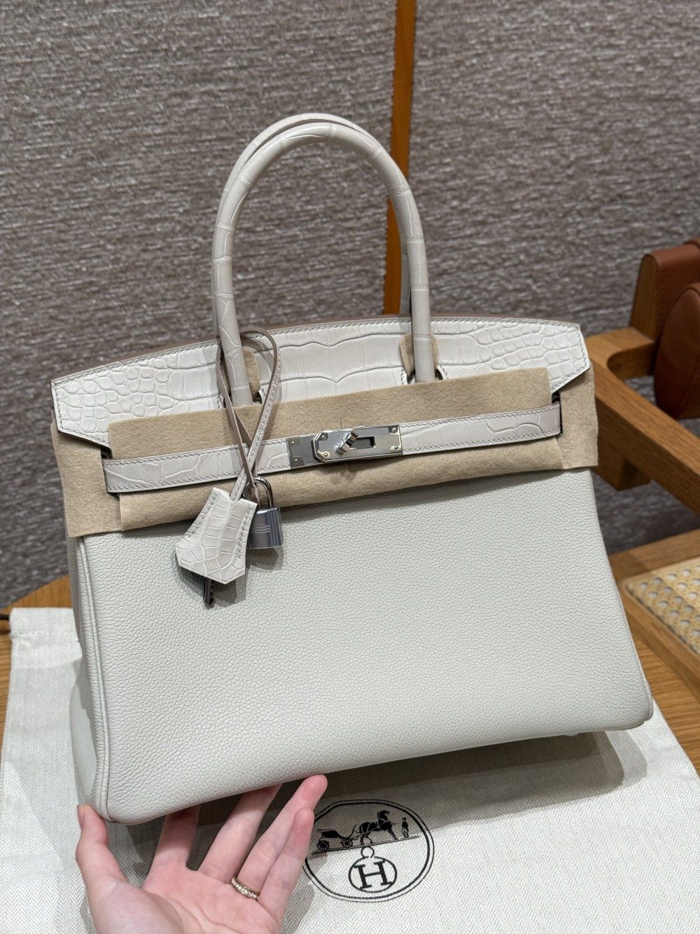 올수공 에르메스 버킨 30 Beton 토고 & 악어 가죽 실버 하드웨어