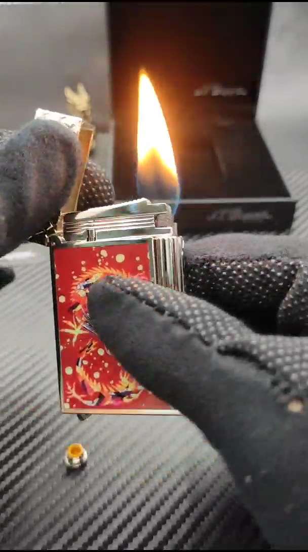 S.T. 듀퐁 드래곤 라인 2 라이터 버건디 & 실버 클링음
