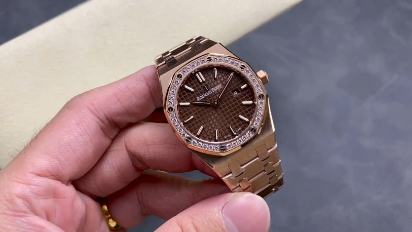 여성용 ZF 공장 오데마피게 로얄오크 브라운 다이얼 금통 다이아 베젤 33mm 67651