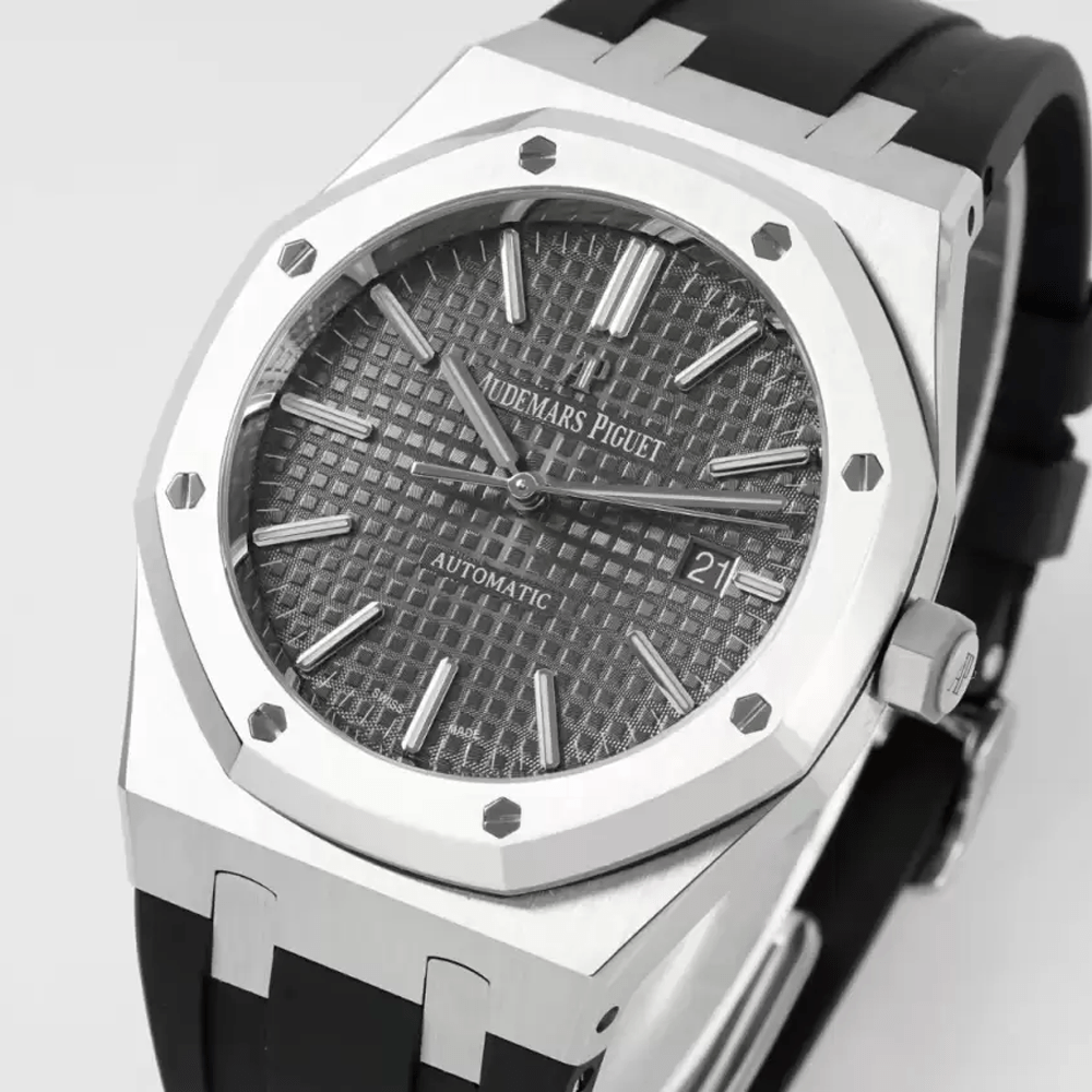 오데마피게 로얄오크 그레이 텍스처 다이얼 SS 블랙 러버 스트랩 41mm V3 15400
