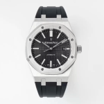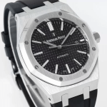 오데마피게 로얄오크 블랙 텍스처 다이얼 SS 블랙 러버 스트랩 41mm V3 15400