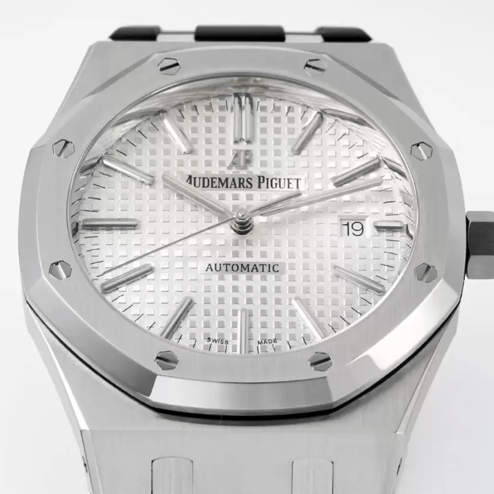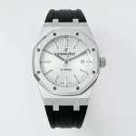 오데마피게 로얄오크 화이트 텍스처 다이얼 SS 블랙 러버 스트랩 41mm V3 15400