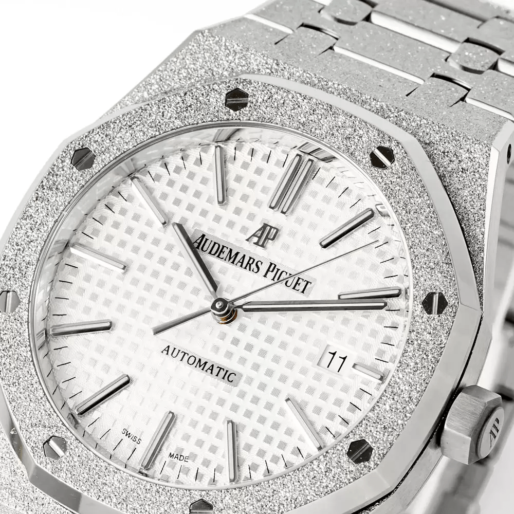 오데마피게 로얄오크 프로스트 화이트 다이얼 SS 브레이슬릿 41mm V3 15410