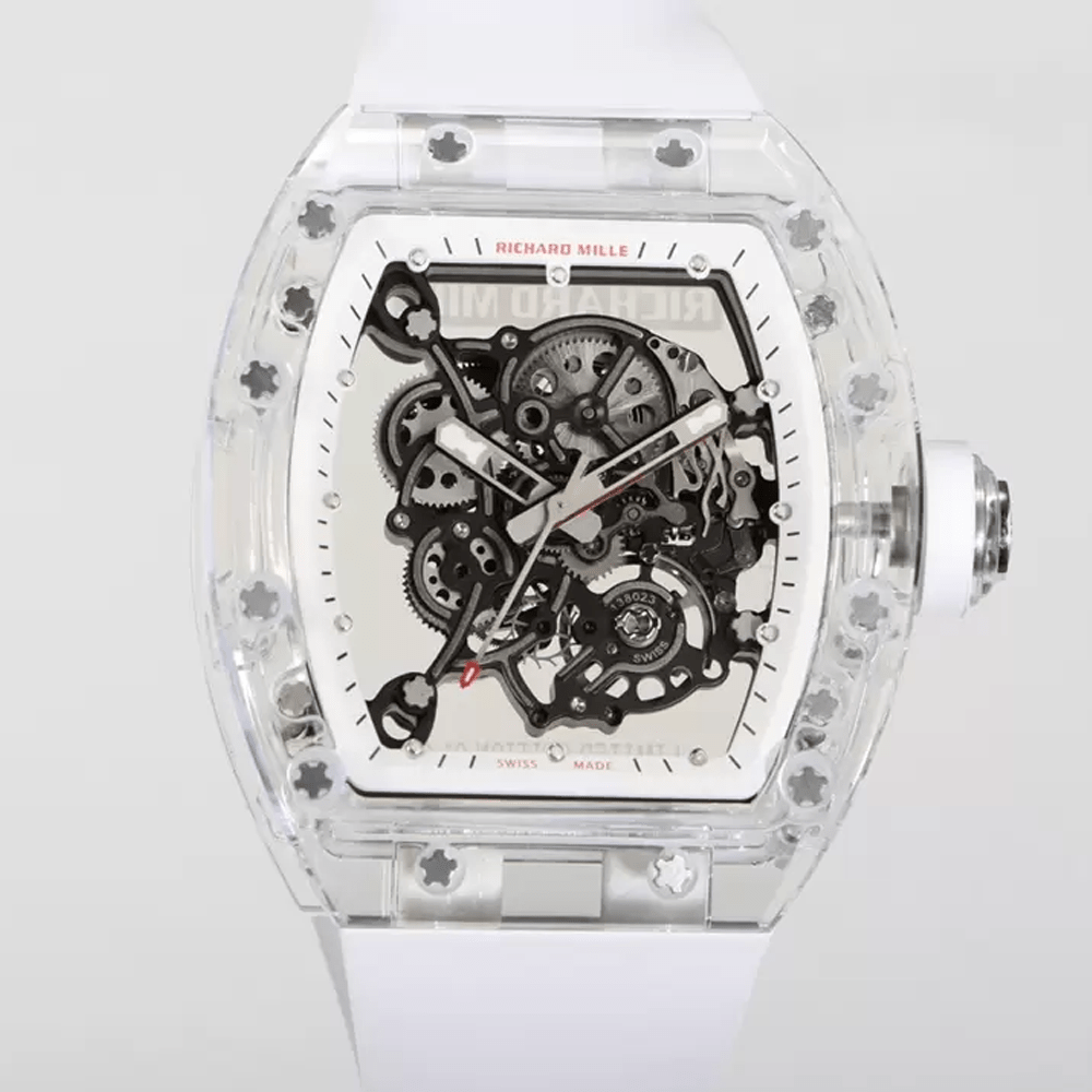 리차드밀 부바왓슨 크리스탈 스켈레톤 다이얼 화이트 러버 스트랩 RM-055