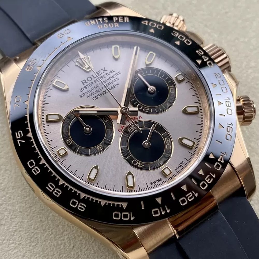 롤렉스 데이토나 크로노그래프 샴페인실버 다이얼 바인덱스 로즈골드 러버밴드 40mm 116515
