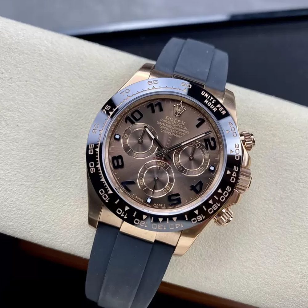 롤렉스 데이토나 크로노그래프 초코 다이얼 블랙인덱스 로즈골드 러버밴드 40mm 116515