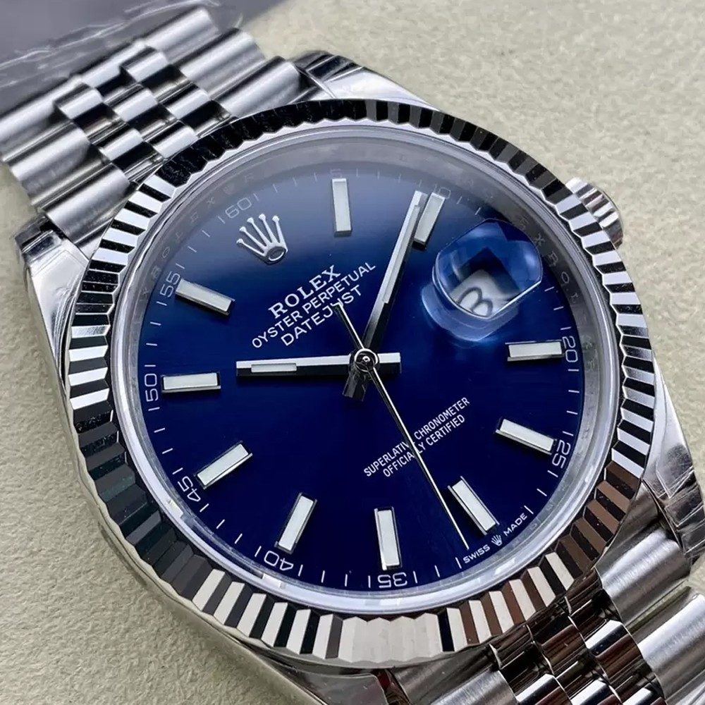 롤렉스 데이트저스트 41 126334 904L 스테인리스 스틸 VSF 1:1 베스트 에디션 블루 스틱 다이얼 주빌리 브레이슬릿 VS3235 V2 (133g)