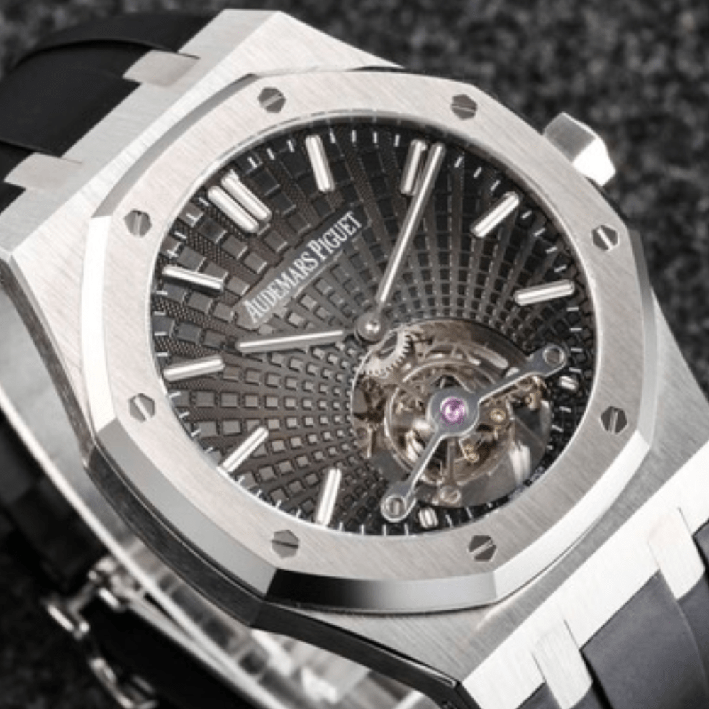 오데마피게 로얄오크 투르비옹 그레이 다이얼 스틸 블랙 러버스트랩 V3 41mm 26522BC