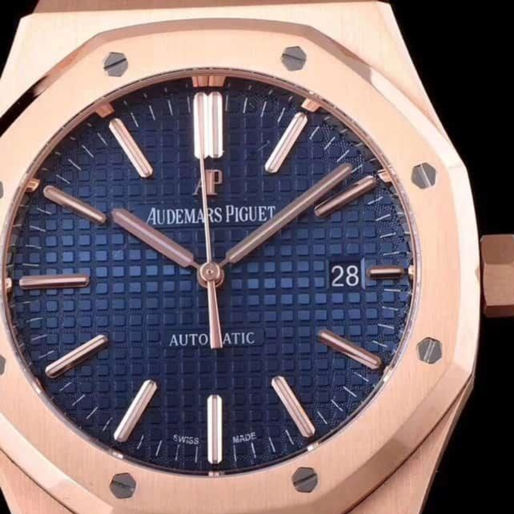 JF 팩토리 AP 오데마 피게 로얄 오크 시리즈 15400OR.OO.1220OR.03 시계 로즈 골드 스틸 케이스 블루 플레이트