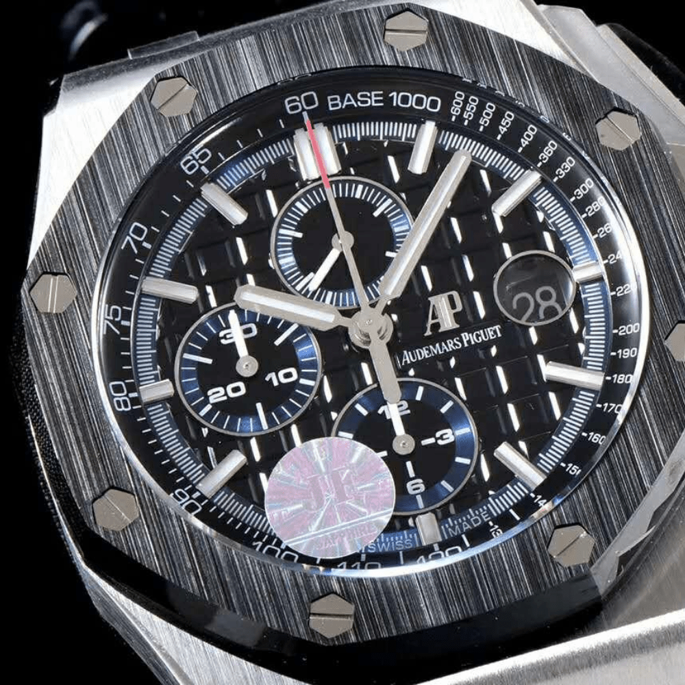 최강 에디션 "26411PO" 시리즈 [JF Fine A P26411PO 스틸 케이스, 블랙 세라믹 베젤 시리즈, 직경 44mm, 커스텀 에디션 12시간 크로노그래프 3.126 무브먼트 장착, 최고급 러버 스트랩]