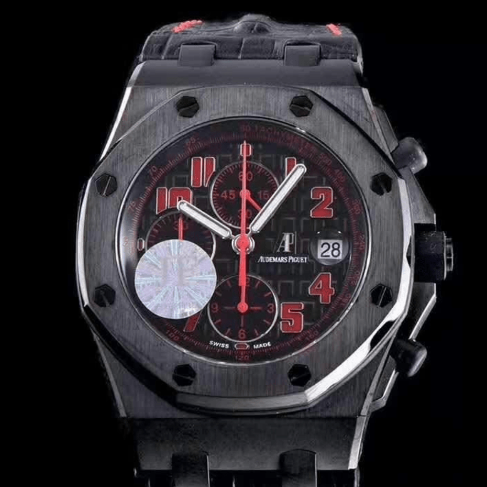 오데마피게 로얄오크 오프쇼어 블랙/레드 다이얼 라스베가스 한정판 가죽 스트랩 42mm 26170ST
