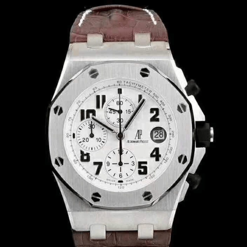 오데마피게 로얄오크 오프쇼어 화이트 다이얼 스틸 브라운 가죽스트랩 42mm 26170ST
