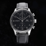 IWC 포르투기저 크로노그래프 실버 블랙 다이얼 레더 스트랩 41mm IW371447